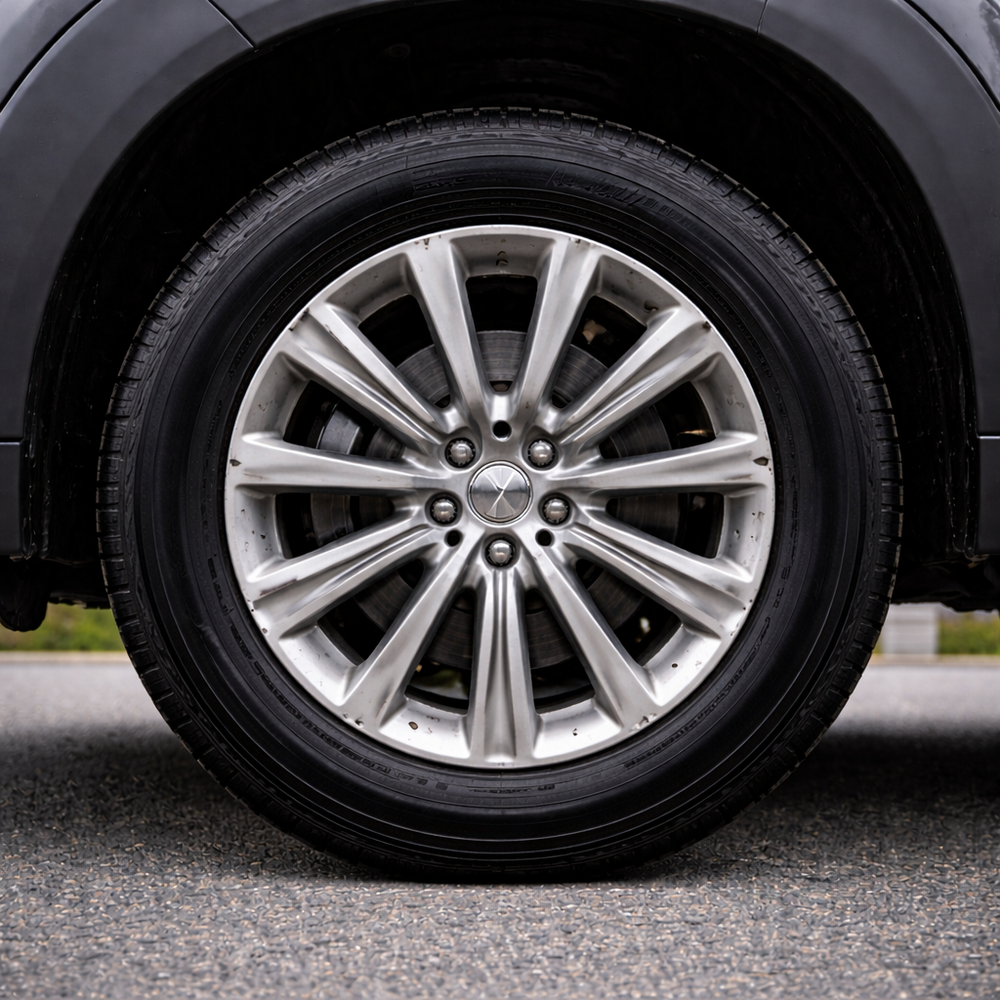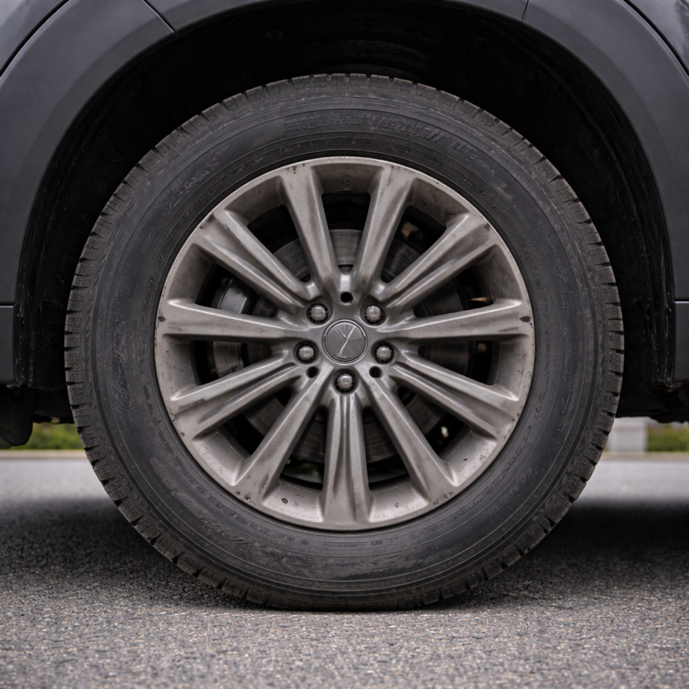 El neumático luce un negro profundo y uniforme, y los plásticos recuperan un aspecto renovado y limpio, transmitiendo sensación de coche cuidado desde el primer vistazo.